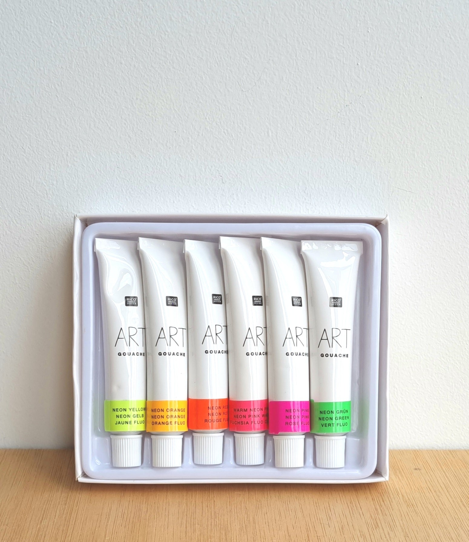 Neon yellow, Neon orange, Neon red, Neon pink warm. neon pink, neon green