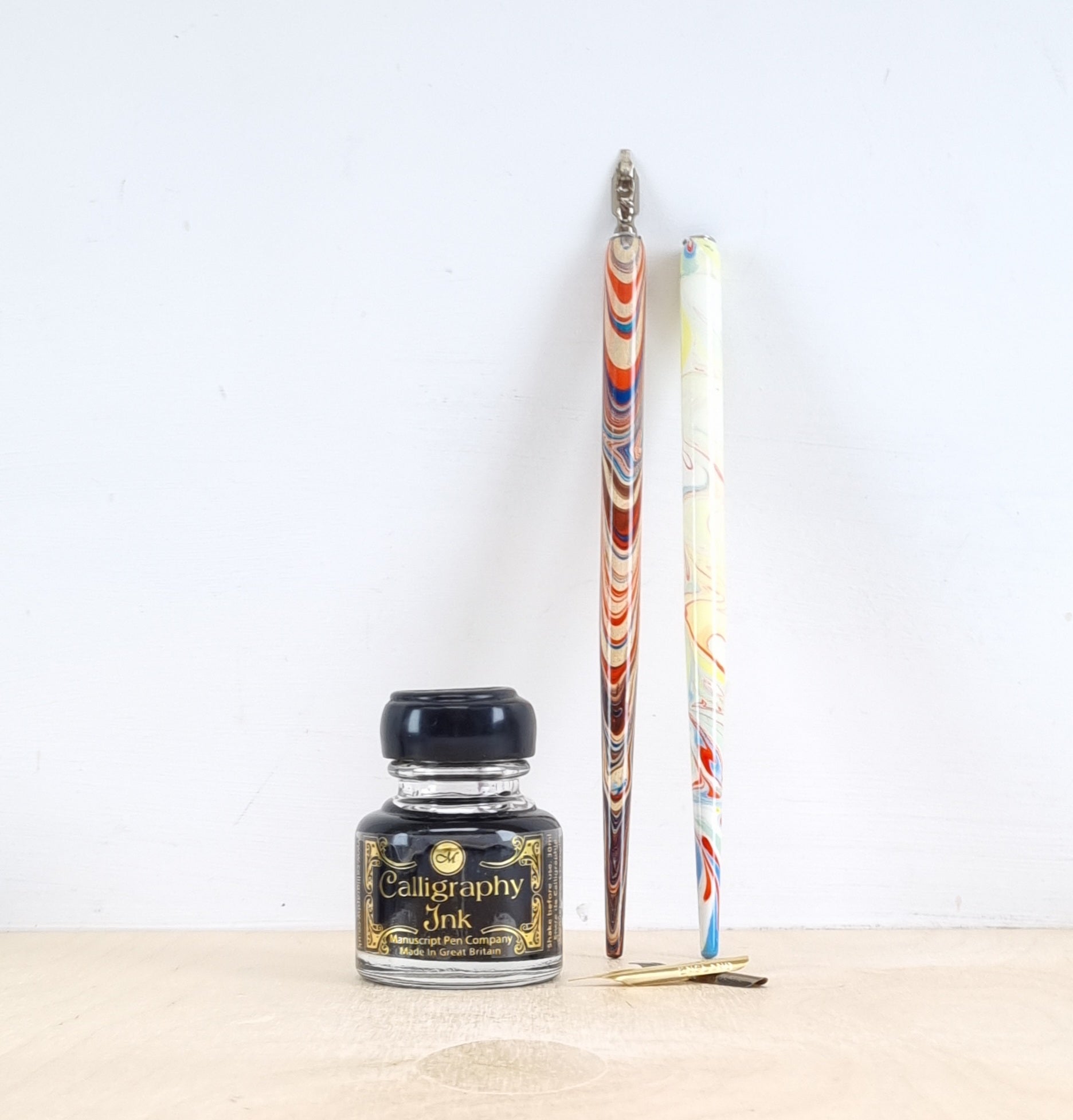 The style of nibs and holder will vary depending on stock, so we have shown 2 different ones in the picture.