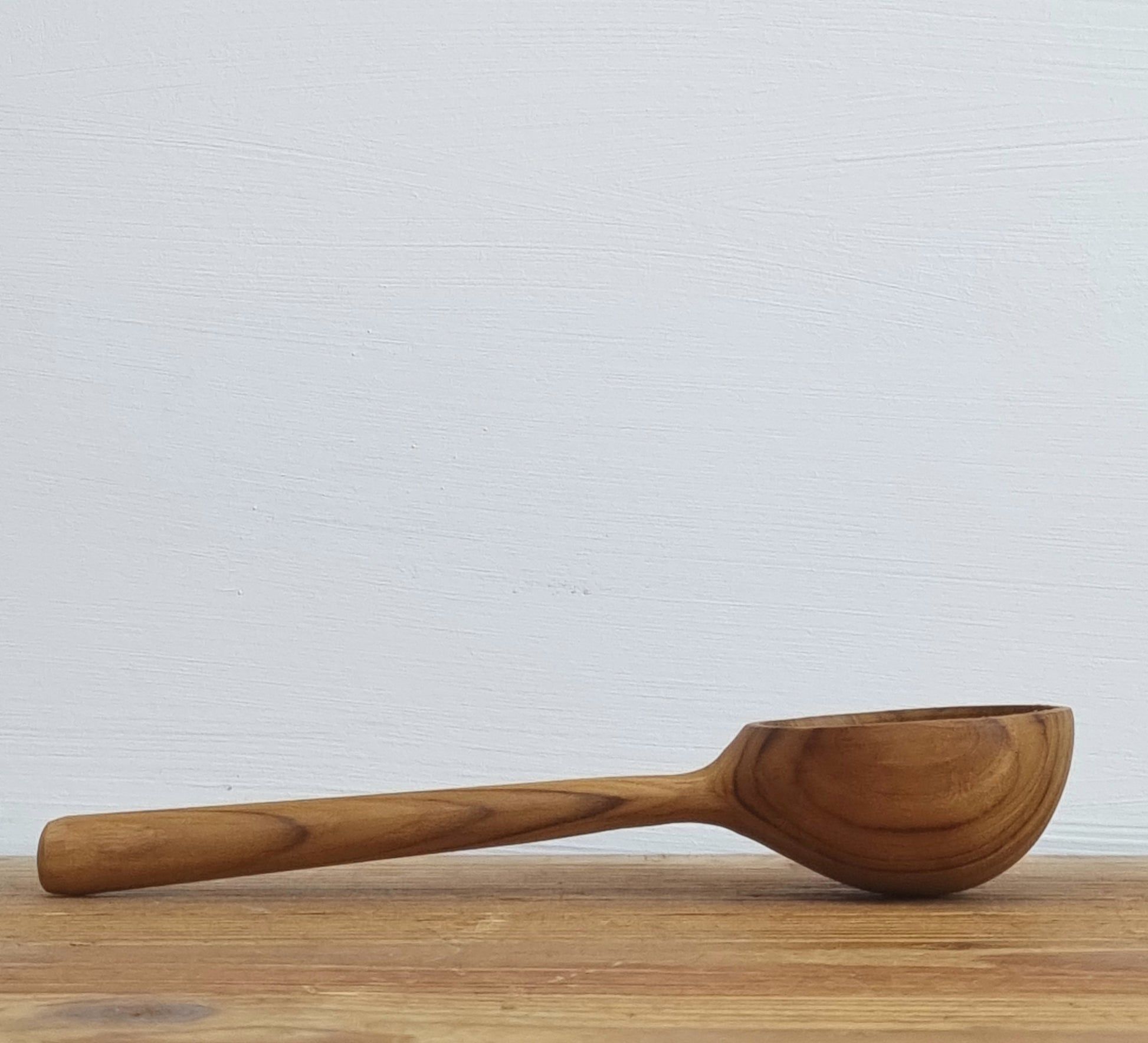 A coffee scoop made from reclaimed teak in Bali. These are hand made and therefore all slightly different.