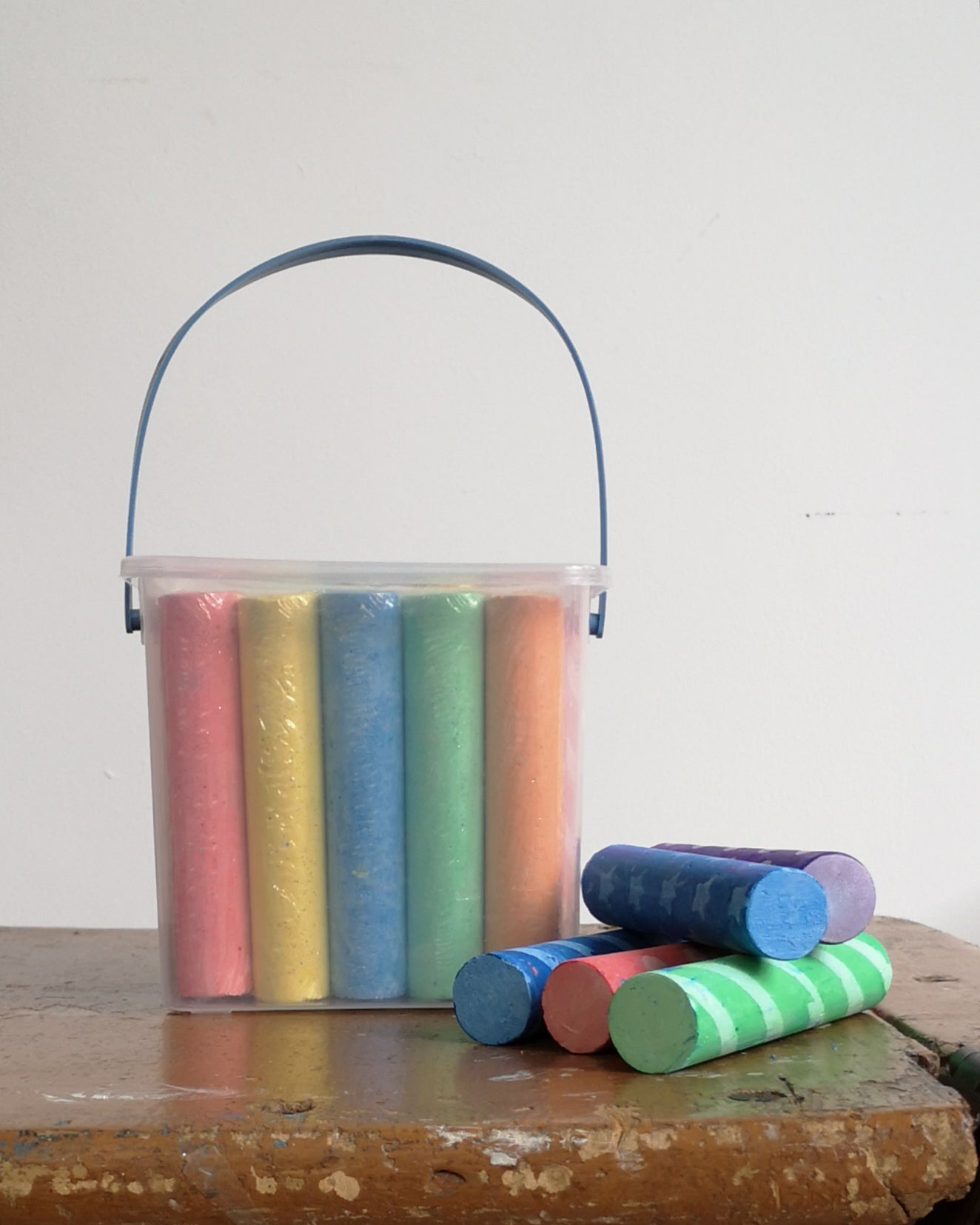 A box of 20 chunky floor chalks in red, orange,yellow,green, blue and purple..
