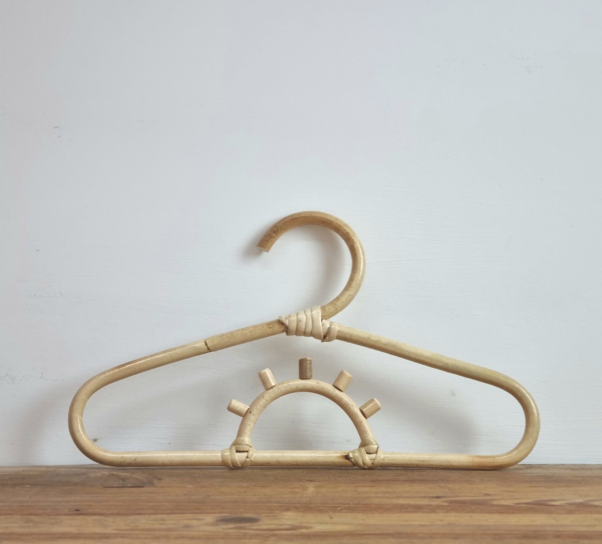 A lovely hand made rattan hanger to display your favourite outfits or maybe use to make a mobile.